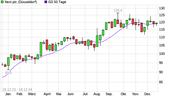 Mit dem Rücksetzer auf 119,20 EUR hat die Next-Aktie am 17.12.2024 die 50-Tage-Linie nach unten gekreuzt.