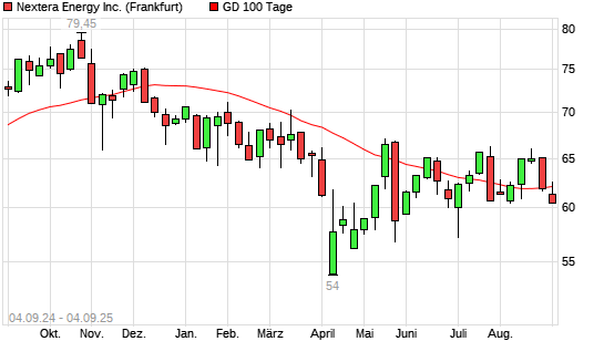 Mit dem Anstieg auf 62,61 EUR hat die NextEra Energy-Aktie am 03.09.2025 die 100-Tage-Linie nach oben gekreuzt.