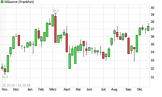Mit dem Anstieg auf 37,80 EUR hat die NiSource-Aktie (ISIN US65473P1057) am 20.10.2025 ein neues 6-Monats-Hoch erreicht und damit den Kurs vom 06.10.2025 eingestellt.