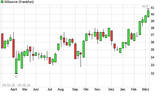 Mit dem Anstieg auf 40,80 EUR hat die NiSource-Aktie (ISIN US65473P1057) am 04.03.2026 ein neues All-Time-High erreicht und damit den Kurs vom 02.03.2026 eingestellt.
