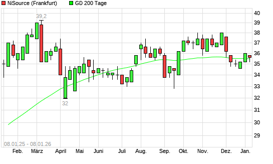 Mit dem Rücksetzer auf 35,40 EUR hat die NiSource-Aktie am 07.01.2026 die 200-Tage-Linie nach unten gekreuzt.