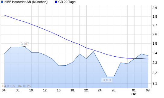 Mit dem Anstieg auf 3,29 EUR hat die Nibe Industrier-Aktie am 03.10.2025 die 20-Tage-Linie nach oben gekreuzt.