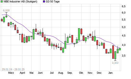 Mit dem Anstieg auf 3,80 EUR hat die Nibe Industrier-Aktie am 27.01.2025 die 50-Tage-Linie nach oben gekreuzt.