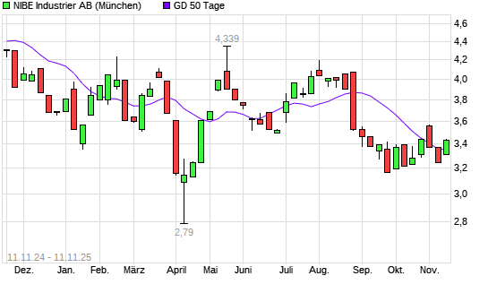 Mit dem Anstieg auf 3,33 EUR hat die Nibe Industrier-Aktie am 10.11.2025 die 50-Tage-Linie nach oben gekreuzt.