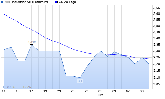 Mit dem Rücksetzer auf 3,20 EUR hat die Nibe Industrier-Aktie am 10.10.2025 die 20-Tage-Linie nach unten gekreuzt.Die Nibe Industrier-Aktie befindet sich seit dem 26.08.2025 im langfristigen ...weiterlesen