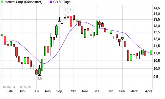 Mit dem Anstieg auf 11,40 EUR hat die Nichirei-Aktie am 09.04.2025 die 50-Tage-Linie nach oben gekreuzt.