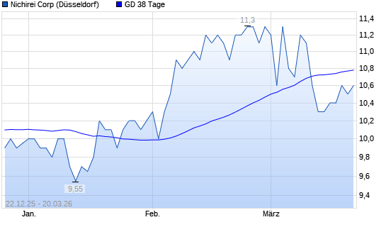 Mit dem Rücksetzer auf 10,70 EUR hat die Nichirei-Aktie am 19.03.2026 die 38-Tage-Linie nach unten gekreuzt.