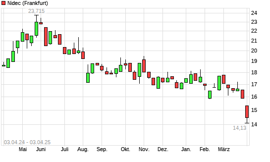 Mit dem Rücksetzer auf 15,00 EUR hat die Nidec-Aktie (ISIN JP3734800000) am 02.04.2025 ein neues 5-Jahres-Tief erreicht und damit den Kurs vom 01.04.2025 eingestellt.