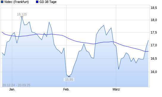 Mit dem Anstieg auf 16,90 EUR hat die Nidec-Aktie am 19.03.2025 die 38-Tage-Linie nach oben gekreuzt.