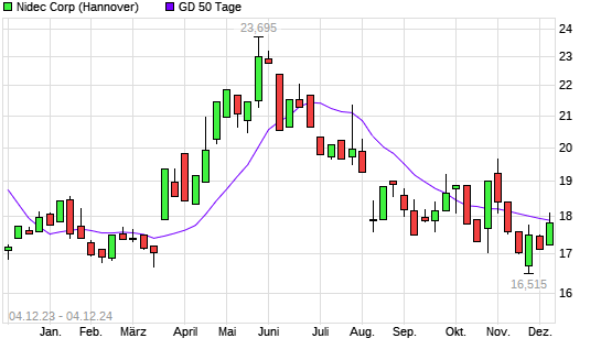 Mit dem Anstieg auf 18,04 EUR hat die Nidec-Aktie am 03.12.2024 die 50-Tage-Linie nach oben gekreuzt.