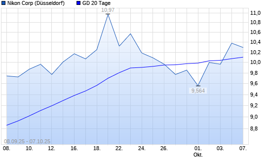 Mit dem Anstieg auf 10,31 EUR hat die Nikon-Aktie am 06.10.2025 die 20-Tage-Linie nach oben gekreuzt.