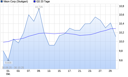 Mit dem Rücksetzer auf 10,15 EUR hat die Nikon-Aktie am 29.10.2025 die 20-Tage-Linie nach unten gekreuzt.