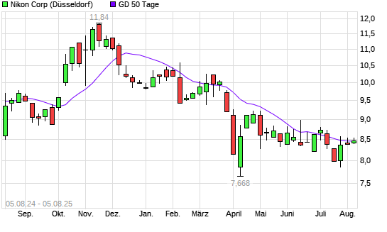 Mit dem Rücksetzer auf 8,42 EUR hat die Nikon-Aktie am 04.08.2025 die 50-Tage-Linie nach unten gekreuzt.