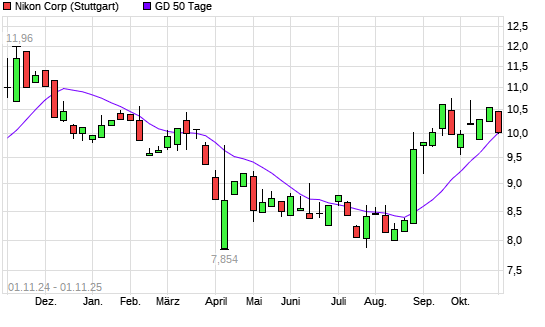 Mit dem Rücksetzer auf 9,82 EUR hat die Nikon-Aktie am 31.10.2025 die 50-Tage-Linie nach unten gekreuzt.