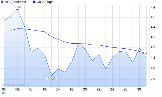 Mit dem Anstieg auf 4,21 EUR hat die Nio-Aktie am 30.01.2025 die 20-Tage-Linie nach oben gekreuzt.