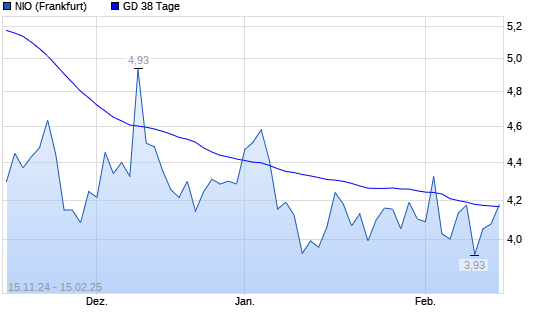 Mit dem Anstieg auf 4,18 EUR hat die Nio-Aktie am 14.02.2025 die 38-Tage-Linie nach oben gekreuzt.