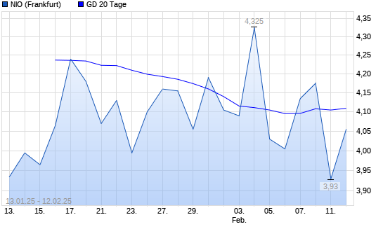 Mit dem Rücksetzer auf 4,01 EUR hat die Nio-Aktie am 11.02.2025 die 20-Tage-Linie nach unten gekreuzt.
