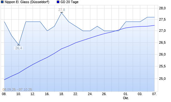 Mit dem Anstieg auf 27,60 EUR hat die Nippon Electric Glass-Aktie am 06.10.2025 die 20-Tage-Linie nach oben gekreuzt.