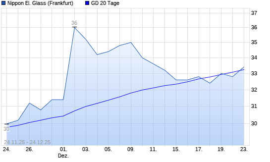Mit dem Anstieg auf 33,40 EUR hat die Nippon Electric Glass-Aktie am 23.12.2025 die 20-Tage-Linie nach oben gekreuzt.