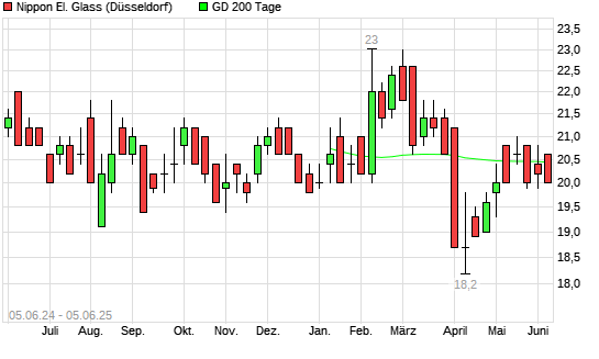 Mit dem Anstieg auf 20,60 EUR hat die Nippon Electric Glass-Aktie am 04.06.2025 die 200-Tage-Linie nach oben gekreuzt.