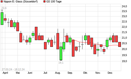 Mit dem Rücksetzer auf 20,20 EUR hat die Nippon Electric Glass-Aktie am 17.12.2024 die 100-Tage-Linie nach unten gekreuzt.