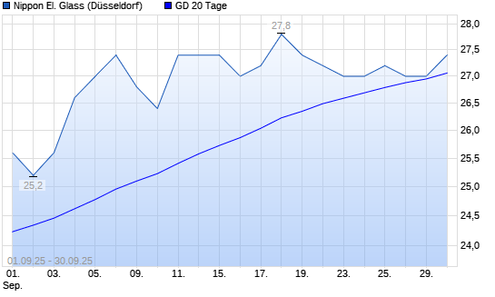 Mit dem Rücksetzer auf 27,20 EUR hat die Nippon Electric Glass-Aktie am 29.09.2025 die 20-Tage-Linie nach unten gekreuzt.