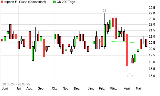 Mit dem Rücksetzer auf 20,60 EUR hat die Nippon Electric Glass-Aktie am 19.05.2025 die 200-Tage-Linie nach unten gekreuzt.