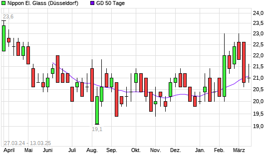 Mit dem Rücksetzer auf 21,20 EUR hat die Nippon Electric Glass-Aktie am 12.03.2025 die 50-Tage-Linie nach unten gekreuzt.