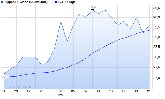 Mit dem Anstieg auf 30,00 EUR hat die Nippon Electric Glass-Aktie am 20.11.2025 die 20-Tage-Linie nach oben gekreuzt.Die Nippon Electric Glass-Aktie befindet sich seit dem 23.07.2025 im langfristigen ...weiterlesen