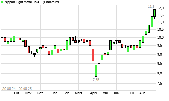 Mit dem Anstieg auf 11,90 EUR hat die Nippon Light Met. Holding-Aktie (ISIN JP3700200003) am 29.08.2025 ein neues 3-Jahres-Hoch erreicht und damit den Kurs vom 28.08.2025 eingestellt.