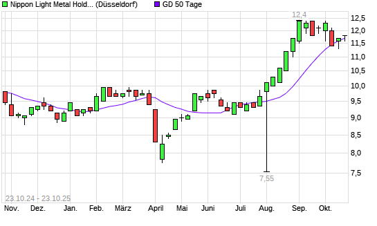 Mit dem Anstieg auf 11,80 EUR hat die Nippon Light Met. Holding-Aktie am 22.10.2025 die 50-Tage-Linie nach oben gekreuzt.