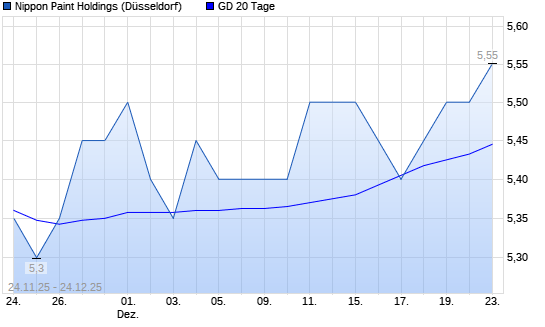 Mit dem Anstieg auf 5,60 EUR hat die Nippon Paint-Aktie am 23.12.2025 die 20-Tage-Linie nach oben gekreuzt.