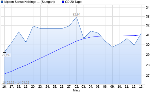 Mit dem Anstieg auf 30,98 EUR hat die Nippon Sanso Holdings-Aktie am 13.03.2026 die 20-Tage-Linie nach oben gekreuzt.
