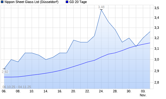 Mit dem Anstieg auf 3,20 EUR hat die Nippon Sheet Glass-Aktie am 03.11.2025 die 20-Tage-Linie nach oben gekreuzt.