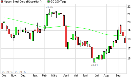 Mit dem Anstieg auf 18,31 EUR hat die Nippon Steel-Aktie am 24.09.2025 die 200-Tage-Linie nach oben gekreuzt.