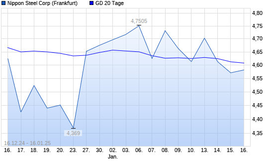 Mit dem Rücksetzer auf 18,28 EUR hat die Nippon Steel-Aktie am 15.01.2025 die 20-Tage-Linie nach unten gekreuzt.