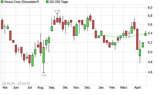 Mit dem Anstieg auf 5,45 EUR hat die Nippon Suisan Kaisha-Aktie am 22.04.2025 die 200-Tage-Linie nach oben gekreuzt.
