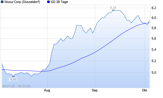 Mit dem Anstieg auf 6,00 EUR hat die Nippon Suisan Kaisha-Aktie am 03.10.2025 die 38-Tage-Linie nach oben gekreuzt.