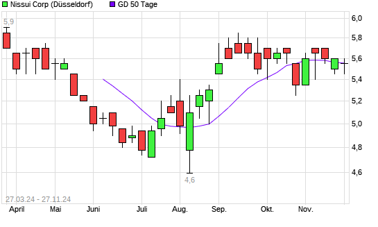 Mit dem Anstieg auf 5,65 EUR hat die Nippon Suisan Kaisha-Aktie am 26.11.2024 die 50-Tage-Linie nach oben gekreuzt.