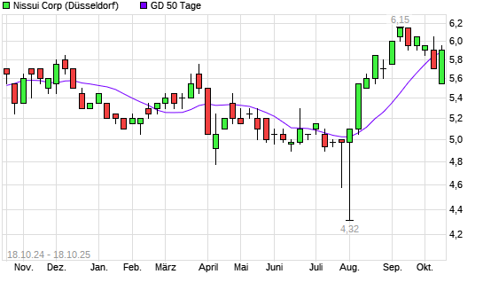 Mit dem Anstieg auf 5,95 EUR hat die Nippon Suisan Kaisha-Aktie am 17.10.2025 die 50-Tage-Linie nach oben gekreuzt.