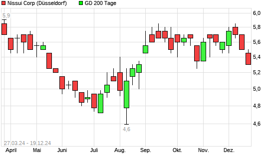 Mit dem Rücksetzer auf 5,40 EUR hat die Nippon Suisan Kaisha-Aktie am 18.12.2024 die 200-Tage-Linie nach unten gekreuzt.