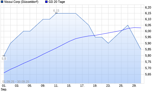 Mit dem Rücksetzer auf 6,00 EUR hat die Nippon Suisan Kaisha-Aktie am 29.09.2025 die 20-Tage-Linie nach unten gekreuzt.Die Nippon Suisan Kaisha-Aktie befindet sich seit dem 05.08.2025 im ...weiterlesen