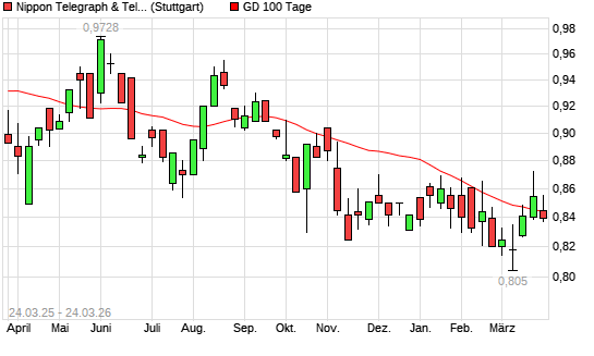 Mit dem Rücksetzer auf 0,83 EUR hat die Nippon Telegraph & Telephone-Aktie am 23.03.2026 die 100-Tage-Linie nach unten gekreuzt.