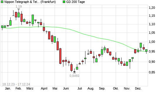 Mit dem Rücksetzer auf 0,94 EUR hat die Nippon Telegraph & Telephone-Aktie am 16.12.2024 die 200-Tage-Linie nach unten gekreuzt.