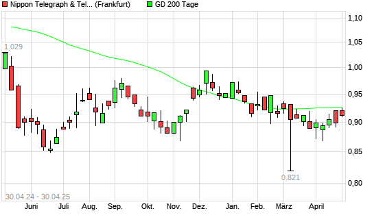 Mit dem Rücksetzer auf 0,91 EUR hat die Nippon Telegraph & Telephone-Aktie am 29.04.2025 die 200-Tage-Linie nach unten gekreuzt.
