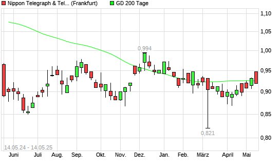 Mit dem Rücksetzer auf 0,92 EUR hat die Nippon Telegraph & Telephone-Aktie am 13.05.2025 die 200-Tage-Linie nach unten gekreuzt.