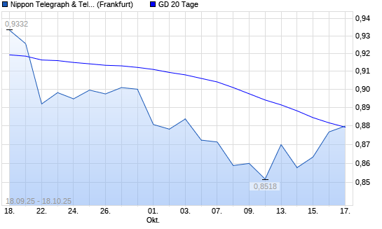 Mit dem Anstieg auf 0,88 EUR hat die Nippon Telegraph & Telephone-Aktie am 17.10.2025 die 20-Tage-Linie nach oben gekreuzt.Die Nippon Telegraph & Telephone-Aktie befindet sich seit dem 22.09.2025 ...weiterlesen