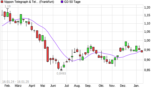 Mit dem Rücksetzer auf 0,94 EUR hat die Nippon Telegraph & Telephone-Aktie am 15.01.2025 die 50-Tage-Linie nach unten gekreuzt.Die Nippon Telegraph & Telephone-Aktie befindet sich seit ...weiterlesen