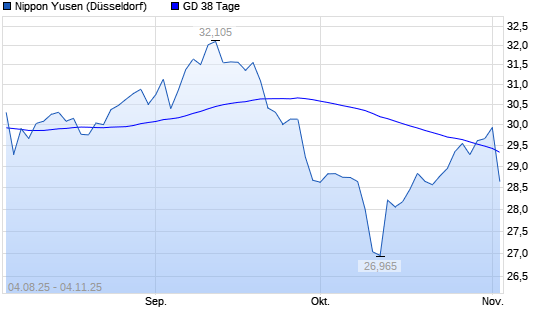 Mit dem Anstieg auf 29,69 EUR hat die Nippon Yusen-Aktie am 03.11.2025 die 38-Tage-Linie nach oben gekreuzt.