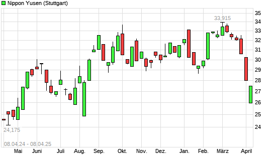 Mit dem Rücksetzer auf 25,33 EUR hat die Nippon Yusen-Aktie (ISIN JP3753000003) am 07.04.2025 ein neues 6-Monats-Tief erreicht und damit den Kurs vom 04.04.2025 eingestellt.Die ...weiterlesen
